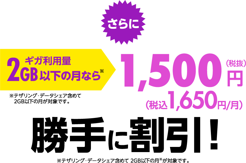 ※5:テザリング・データシェア含めて2GB以下の月が対象です。